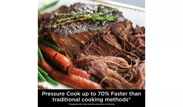 Pressure Cook up to 70% faster than traditional cooking methods*. Pressure Cooking uses super-heated steam to quickly cook tender meals – perfect for tenderising large cuts of meat, enjoy juicy beef brisket or pulled pork in a fraction of the time.