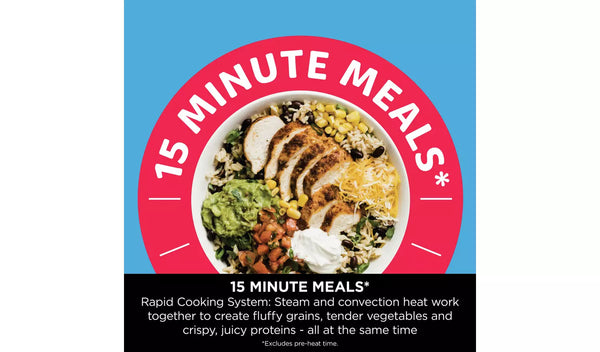 Rapid Cooker Mode combines steam with air frying to create fluffy grains or al dente pasta, tender vegetables and crispy mains – all at once.